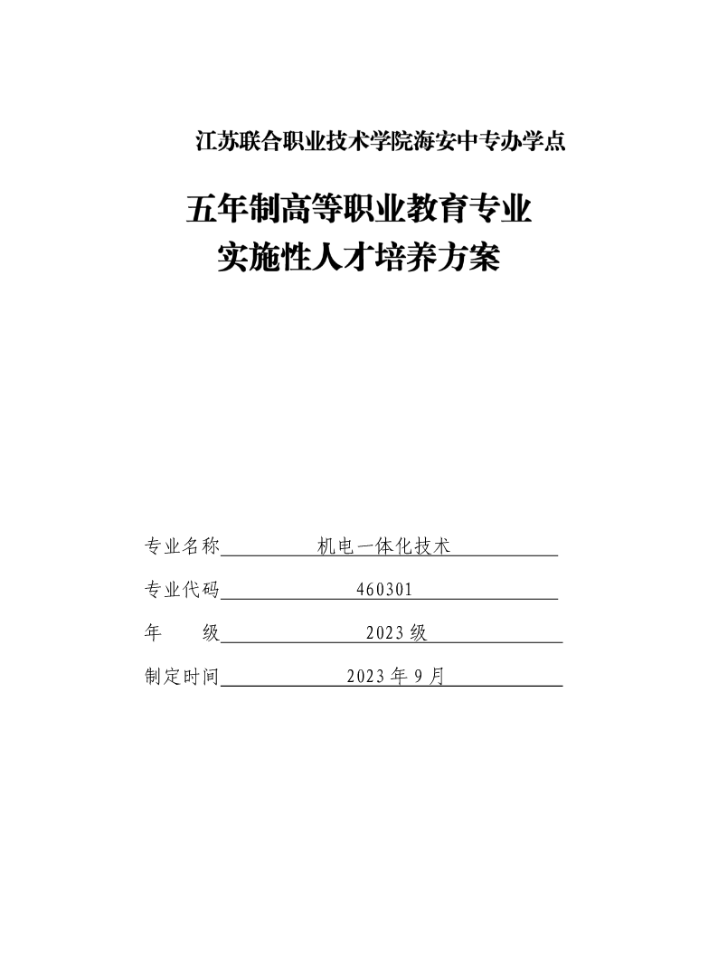 2023级五年制高职机电一体化技术专业实施性人才培养方案