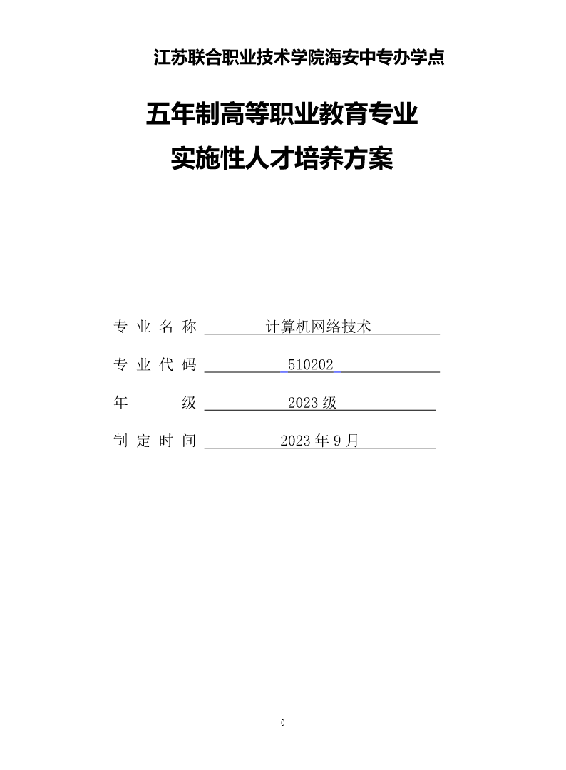 2023级五年制高职计算机网络技术专业实施性人才培养方案