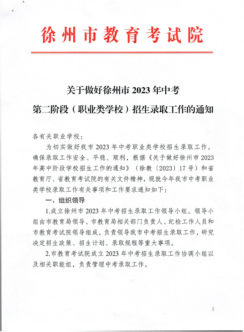 关于做好徐州市2023年中考第二阶段(职业类学校)招生录取工作的通知