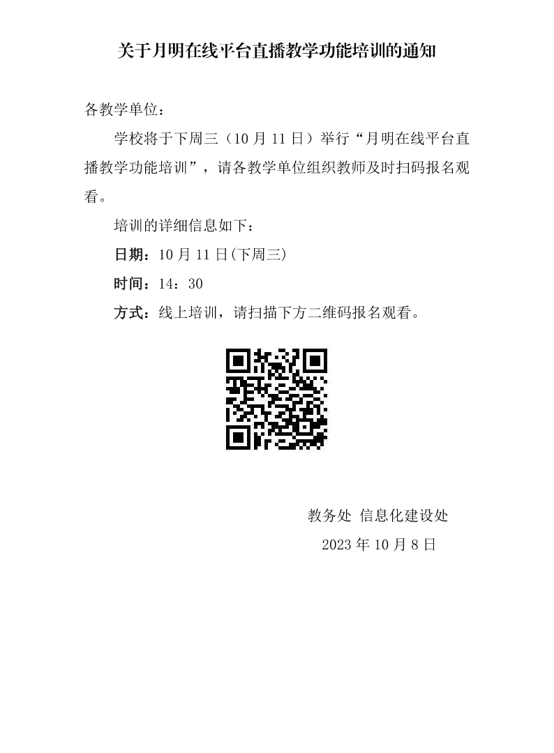 江苏开放大学教务处、信息化建设处关于举办月明在线平台直播教学功能培训的通知